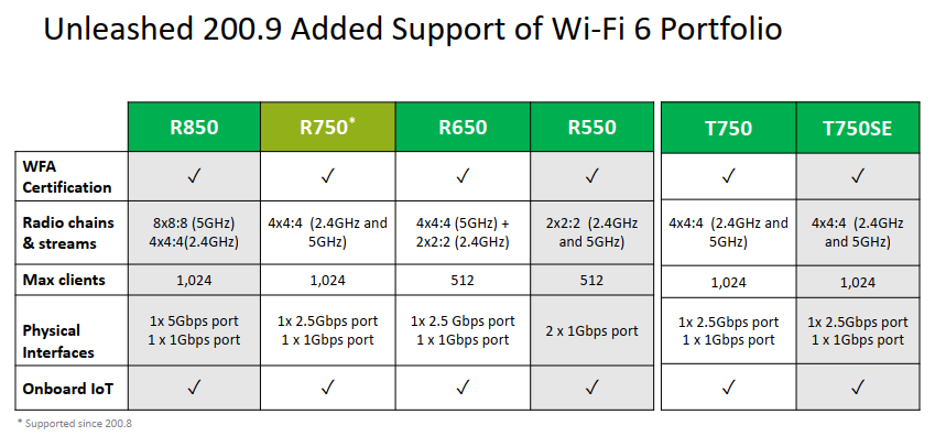 Kõige oodatum on tugi Ruckuse uutele Wi-Fi6 tugijaamadele. 200.8-ga sai kasutada juba R750, nüüd on nimekiri pikem:
