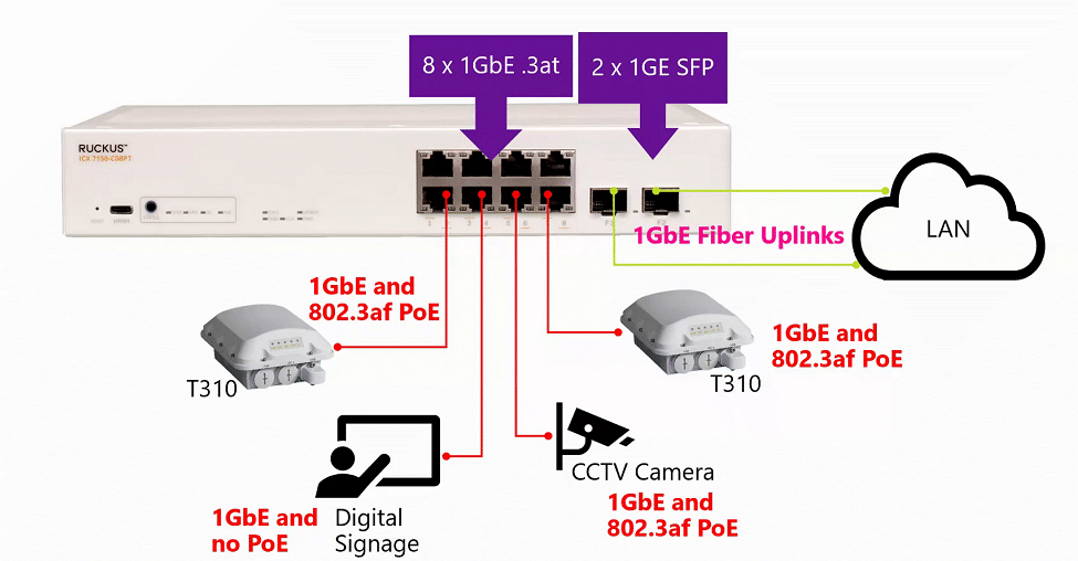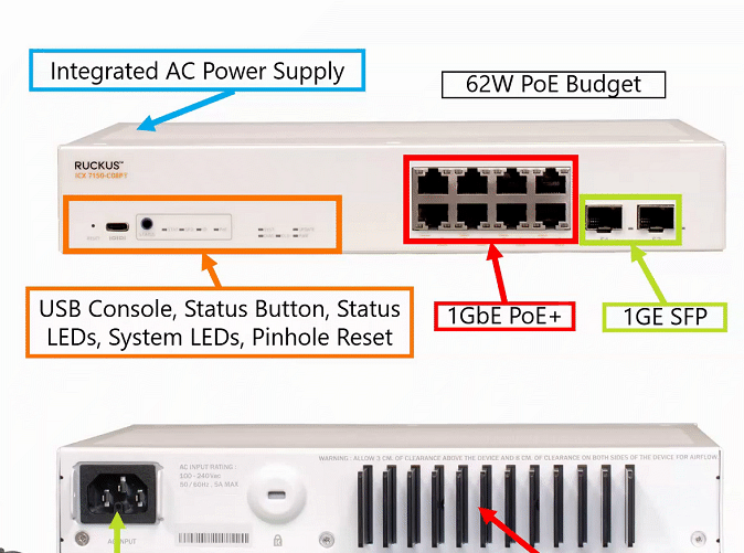 Ruckuse kompakt ICX7100 switchid on ilma õhutusavata, uus mudel on 8 pordine PoE switch, mille temperatuuritaluvuse piire on laiendatud -40C- 65C, seega on see mõeldud kohtadesse kus pole kütet ega ka nõuetekohast jahutust. Seega switchi on hea kasutada õuekappides, keldrites, tööstuses, pööningutel jne. Siwtchil pole lahtisi õhutusauke, kuhu tolm koguneda saaks.